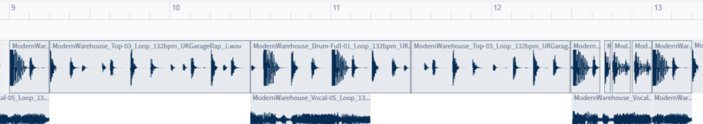 今回使ったサンプルはこんな感じ。UKGarage系のパックからつまみ食い。もっとも、2つくらい使ってないのもあります。